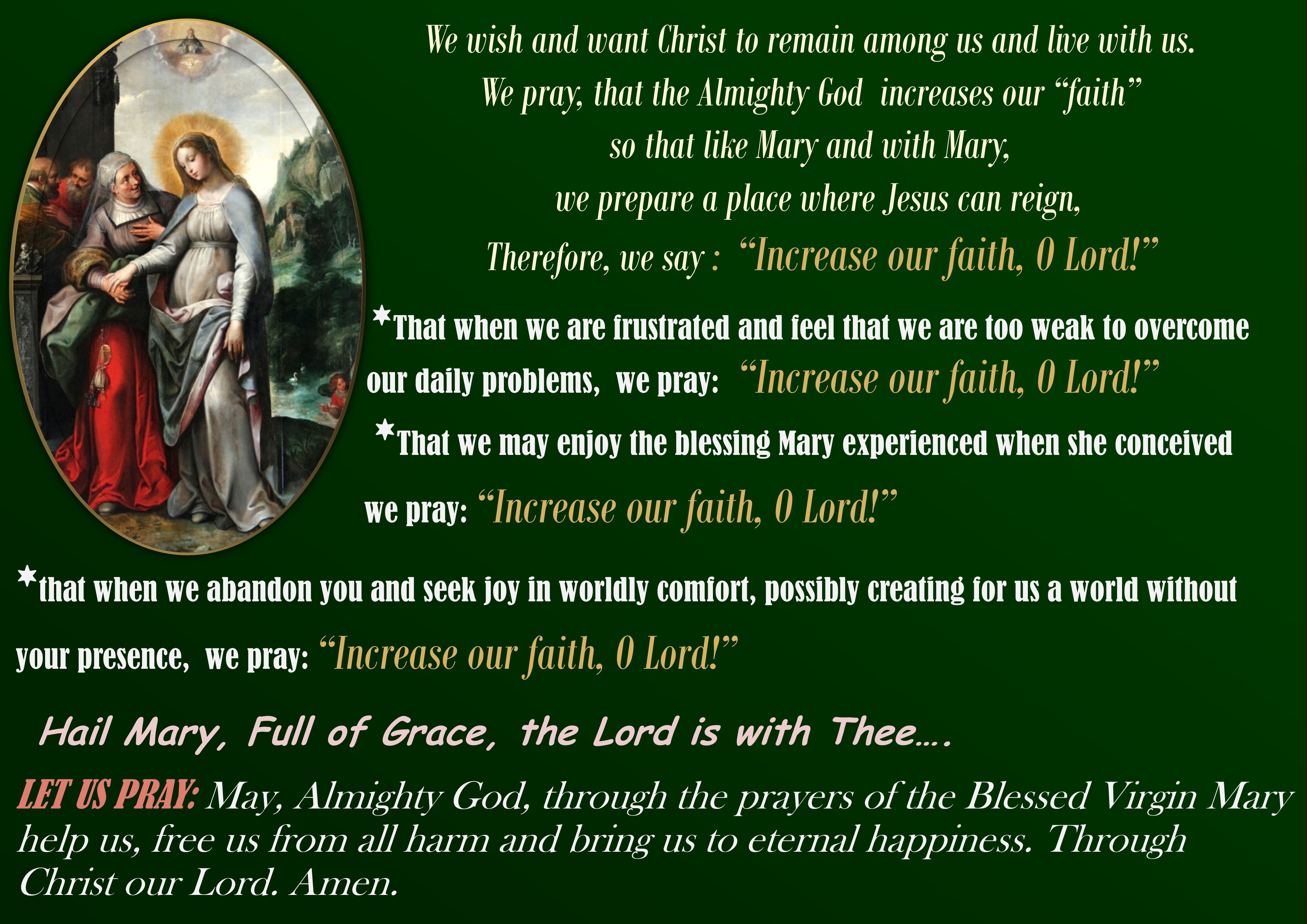 Together with St. Elizabeth, we address Mary: “Blessed is she who believed there would be a fulfilment of what was spoken to her from the Lord” (Luke 1:45)