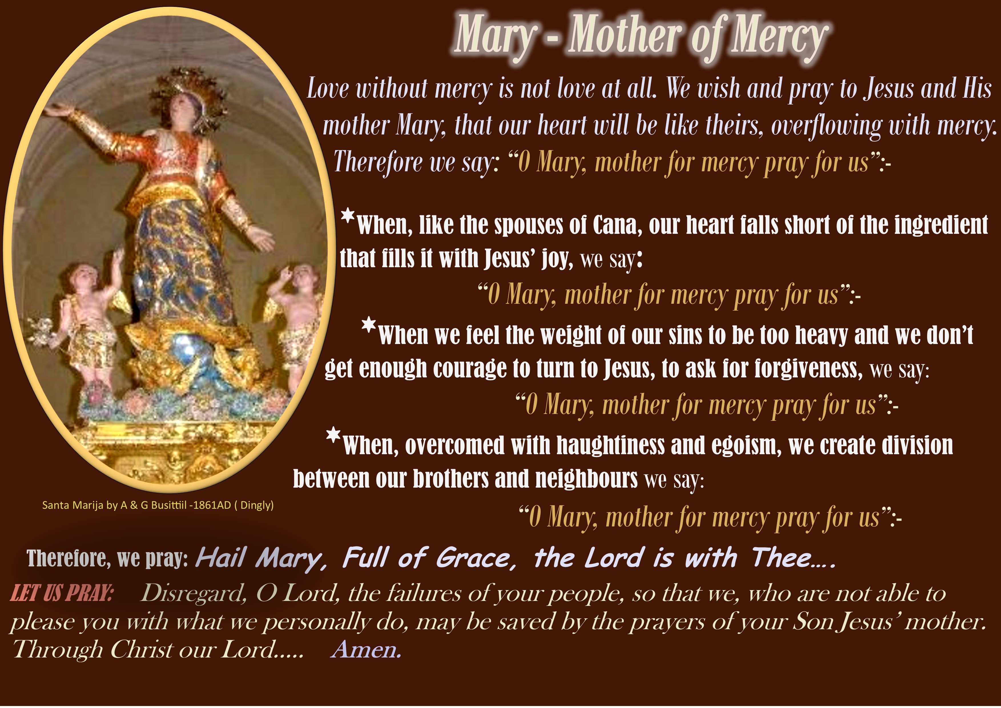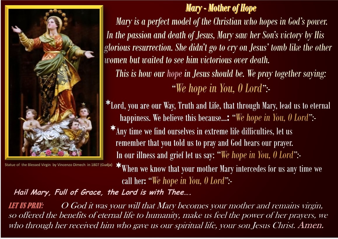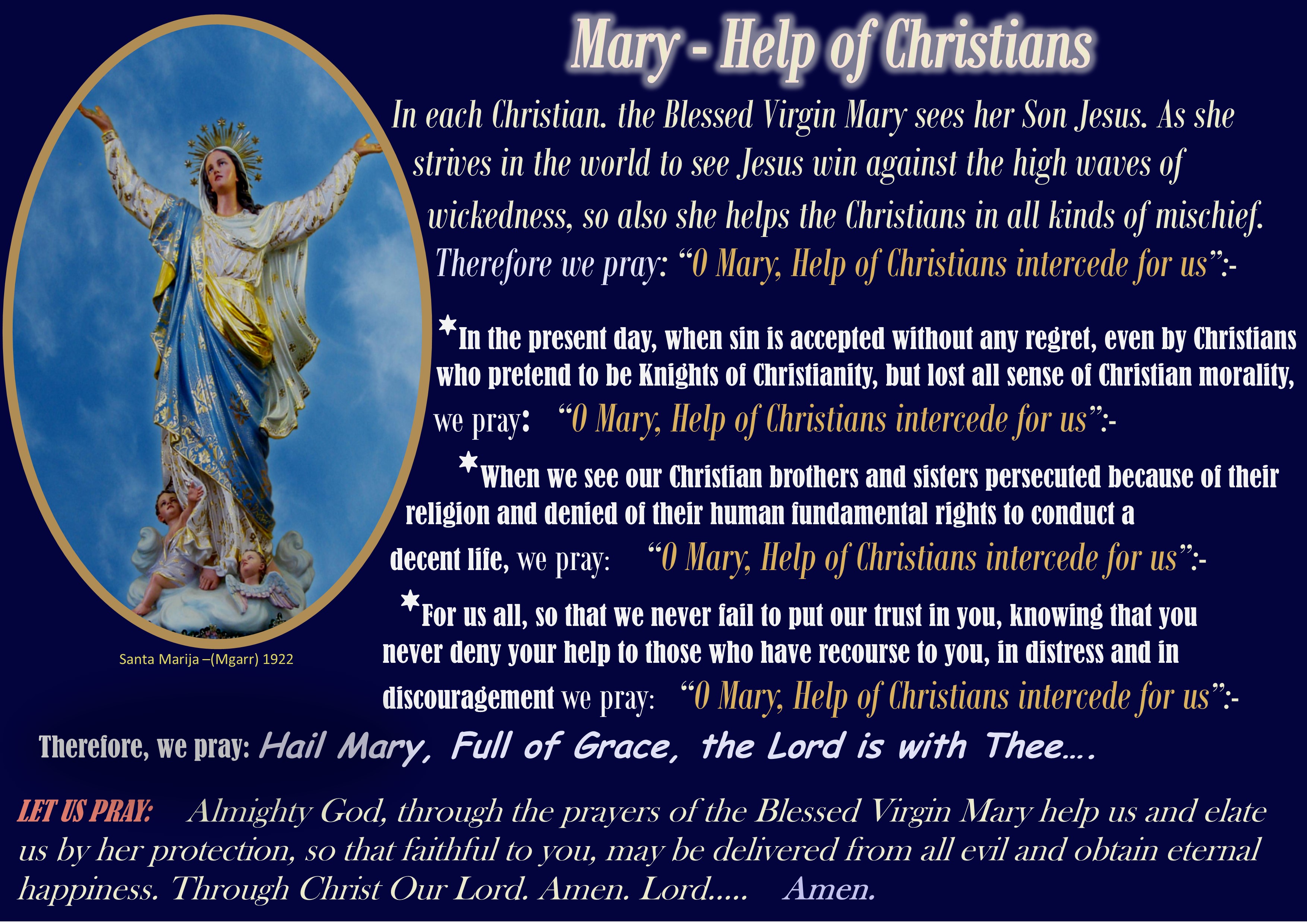 The “Fifteen-day” devotion “Kwindicina” is a devotion to Our Lady as a preparation to the Solemnity of the her Assumption into heaven, it was included in the Maltese Ritual of Sacraments and Popular devotions issued in 1967. We, as a Nation, are very obliged to the Feast of the Assumption of The Blessed Virgin. Wishing that this devotion reaches, as many devotees of Our Lady as possible, we decided to publish these beautiful thoughts adapted from Fr. A. Dimech’s book published in May 2002.